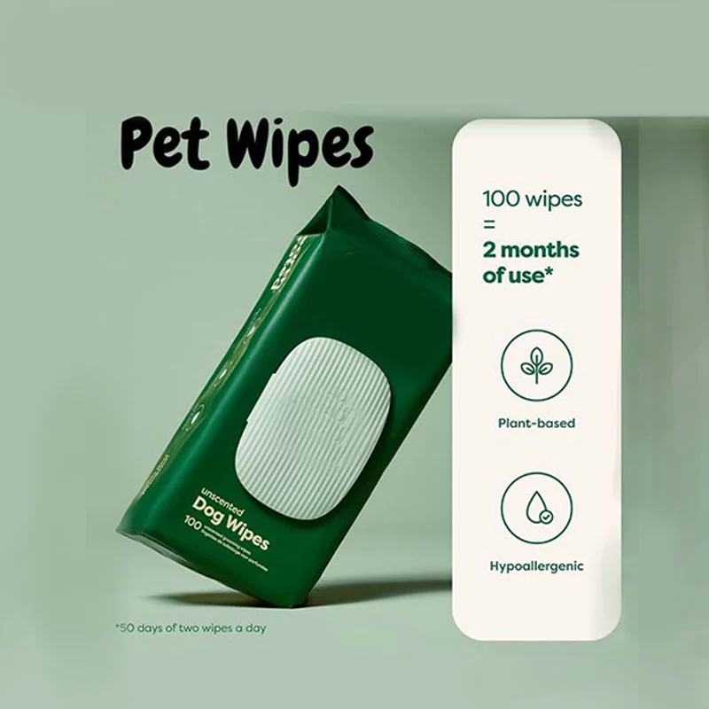 - тоқылған емес мата: жұмсақ, тітіркендірмейтін және үй жануарларының сезімтал аймақтарын сүрту үшін ыңғайлы тазарту процесін қамтамасыз етеді.